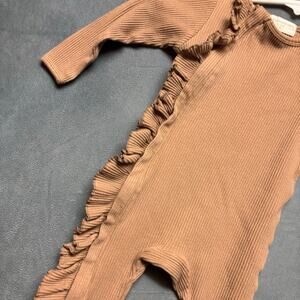 The Neutral Babe Baby Jumpsuits SOLD OUT Tan Preppy Ruffle 2T Ribbed Cute Long
