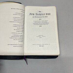 The New Analytical Bible and Dictionary of the Bible KJV General Index Edition. Has wear and discoloration. See photos. Has writing/names in it and name inside cover on label.