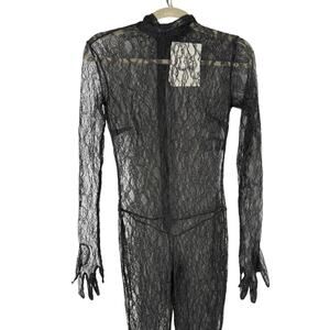 The New Arrivals by Ilkyaz Ozel Circe Jumpsuit in black features sheer floral lace with a sultry, body-hugging silhouette. A bold and sexy statement piece, perfect for evening events, parties, or red-carpet style.