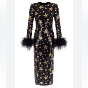 Veronique Sequin Feather Trim Stars Dress.