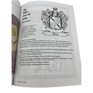 Comprehensive genealogical resource exploring the Tiller family name, origins, coats of arms, and historical lineage with a personalized certificate. The book has a soft cover and measures 10.75" x 8.25". Published in 1997.