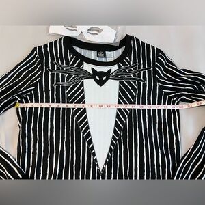 This top is great for lounging around the house, or for themed parties and events. It is a regular size, suitable for men of all shapes and sizes. Don't miss out on this unique and fun piece, perfect for any Nightmare Before Christmas fan.