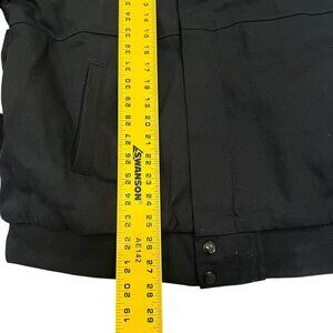 This is a Disney "The Nightmare Before Christmas" Jack Skellington bomber jacket in size L. The jacket features a solid black color with flames racing design, made of polyester blend satin fabric with polyester lining. It has a mid-length, button closure, and embroidered accents. Suitable for travel, casual wear, and themed activities, the jacket is designed for winter and fall seasons with pockets for added functionality.