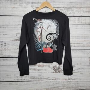 The Nightmare Before Christmas Long Sleeve Cropped Crewneck Tee Black | Medium