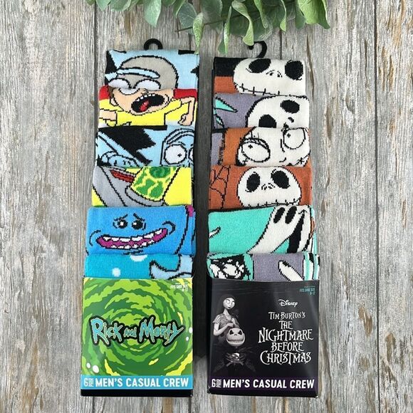 The Nightmare Before Christmas Christmas & Rick and Morty Crew Socks 2, 6-Packs