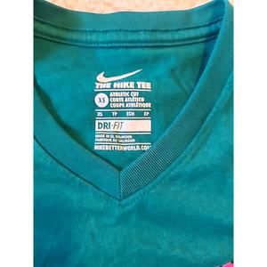 The Nike Tee Athletic Cut Dri Fit XS Green Pink Girl's V Neck T Shirt