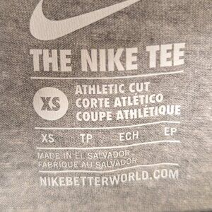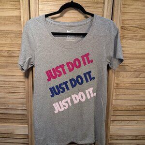 The Nike Tee Athletic Cut Heather Gray T-Shirt with Multicolor Slogan Size XS