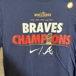 The Nike Tee Men S 2021 World Series Champion Celebration Blue NWOT MLB Braves