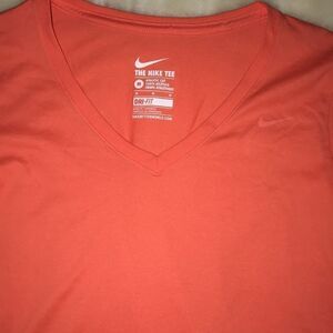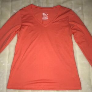 The Nike Tee Women's Dri-fit Active Long Sleeve V-neck Orange Sweatshirt Size M