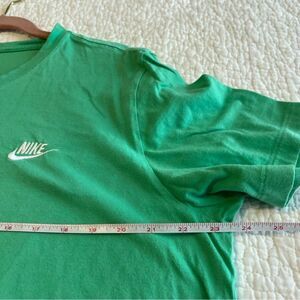The Nike Tee green T-shirt with white embroidered logo on chest.