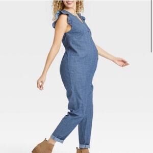 The Nines By Hatch Button Chambray Denim Jumpsuit Maternity Women’s Size Small