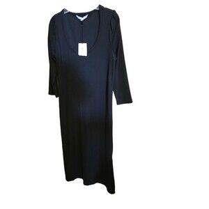 The Nines By Hatch Maternity Ribbed Slit Long Sleeve Midi Dress in Black
