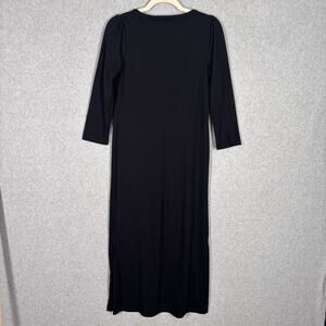 The Nines Hatch Maternity Dress Medium Midi Ribbed Slits Minimal Quiet Basic Womens Black Scoop Neck 3/4 Sleeve Stretch Corp Career Work Office Business Church Classic Casual Lounge Comfy