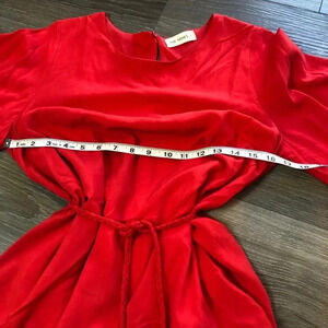 The Nines Red Flowy Mini Dress Tie Waist Bell Sleeves Womens Size Large