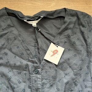 The Nines by HATCH 3/4 Sleeve Button-Front Maternity Jumpsuit Indigo Floral XXL