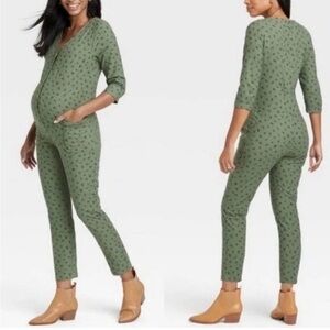 The Nines by HATCH Maternity 3/4 Sleeve Button-Front Floral Jumpsuit Size Small