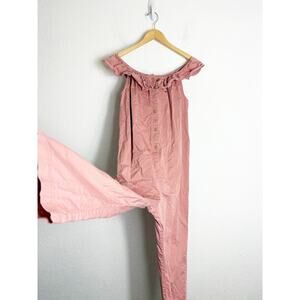 The Nines by Hatch Maternity Jumpsuit Size Small Flounce Off The Shoulder Pink Button-Front