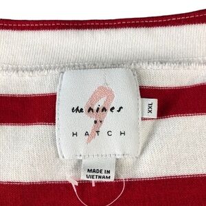The Nines by Hatch Red White Stripe 3/4 Sleeve Top, XXL, Nautical, Scoop Neck