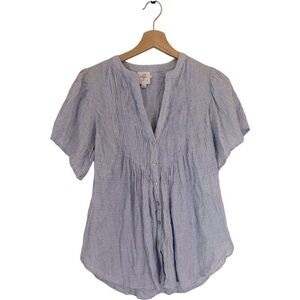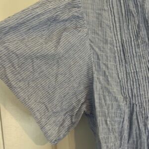 Adorable little smocked flowy blouse. Blue & white stripes. Button up. Short Sleeve. Lightweight. V-neck. In excellent condition.