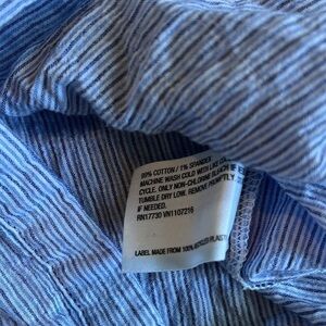 Adorable little smocked flowy blouse. Blue & white stripes. Button up. Short Sleeve. Lightweight. V-neck. In excellent condition.