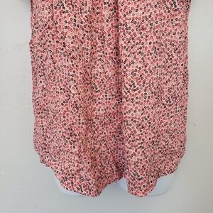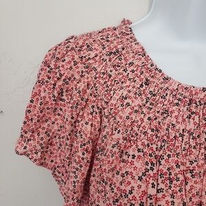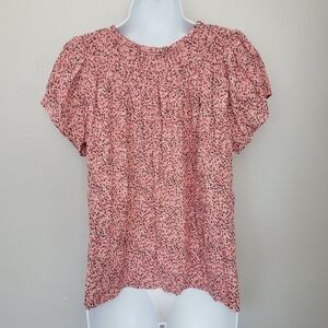 The Nines by Hatch Women's XS Pink Micro Flora Short Sleeve Blouse Smock Neck