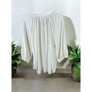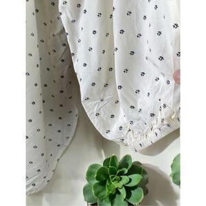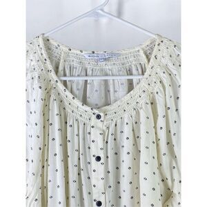 The Nines by Hatch Womens Ivory Black Printed Maternity Button Front Top Large