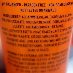 Free from parabens, cruelty free, ph Balanced, Non-comedogenic, not tested on animals, Antioxidants