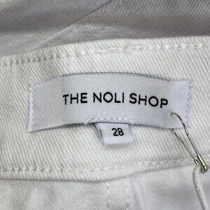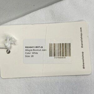 Crisp and elongating, The Noli Shop Allegra jeans feature a flattering high-rise waist and classic bootcut silhouette for a timeless, leg-lengthening look. Crafted from a comfortable cotton blend in clean white, these jeans pair effortlessly with blouses, tees, or sweaters for a polished yet casual vibe.