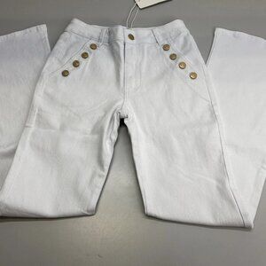 Features: Bootcut silhouette, flattering high waist, crisp white finish, versatile styling
