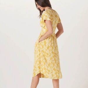 The Normal Brand Ezra Crepe Deep V Button Thru Dress in Cliff Rose Print Small