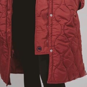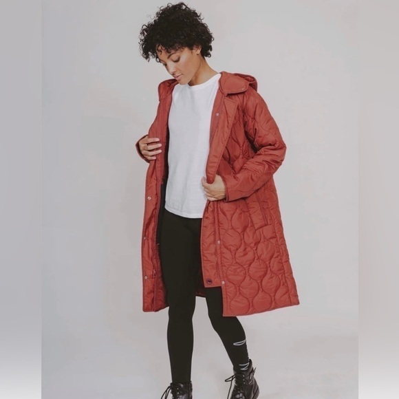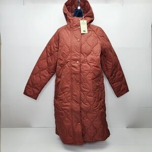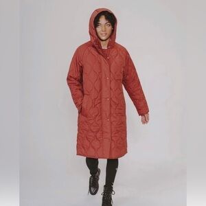 The Normal Brand Quilted Coat Size Small Hood Long Snap Close Burnt Orange NWT