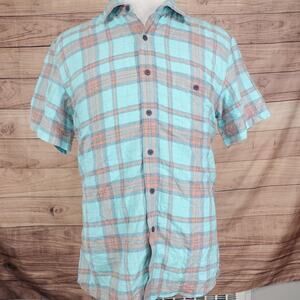 The Normal Brand Shirt Mens Large Blue Orange Plaid Short Sleeve Button Down