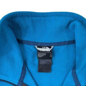 Experience unrivaled warmth and comfort with The North Face 1/4 Zip Fleece Pullover. Ideal for hiking, it's versatile for casual wear too. Men's size large, in a striking blue color.