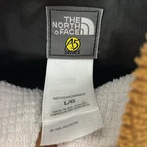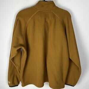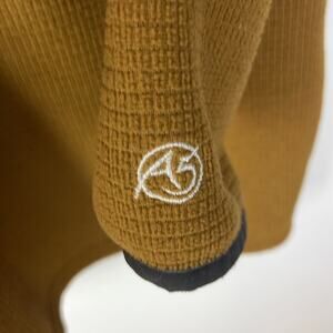 Gently Used The North Face A5 Series Quarter Zip Fleece. This is a men's large. Kind of a orange / champagne color throughout. Box texture to the exterior. White The North Face logo on the chest. A5 logo on one sleeve. 100% polyester.