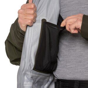 Fabric: 100% polyester (shell 1), 91% polyester, 9% polyethylene (shell 2), 100% polyester (shell 3), 82% nylon, 18% elastane (inner pocket)