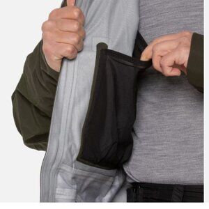 Fabric: 100% polyester (shell 1), 91% polyester, 9% polyethylene (shell 2), 100% polyester (shell 3), 82% nylon, 18% elastane (inner pocket)