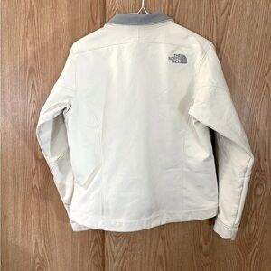 Experience the perfect blend of style and functionality with The North Face Apex Bionic Jacket. Crafted in a sophisticated white and gray color palette, this jacket is designed for optimal performance in outdoor activities. Its soft fleece material ensures warmth and comfort, making it an essential addition to your outdoor wardrobe. Features a zip-up waterproof exterior and soft fleece interior. Shows light wear, pictured.