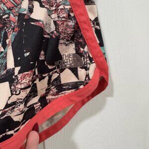 The North Face Abstract Pattern Active Shorts in size small are designed for athletic activities like gym training, hiking, and running. These multicolor shorts feature a unique abstract pattern and are made of 100% polyester blended fabric for comfort and durability. With an athletic fit and a drawstring waist, these shorts are perfect for active women who value style and performance. Additionally, they include pockets for convenience while on the go.