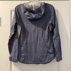 Color is called Grisaille Grey. Size small. Outside is super soft and jacket is lightweight. Slight “cracking” on inside. Example pictures in last photo, but otherwise amazing condition
