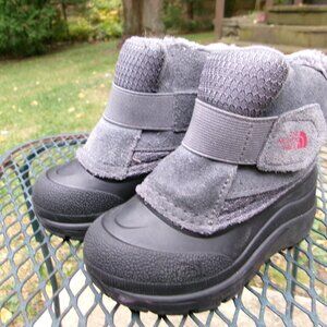 For your consideration is a pair of Alpenglow II toddler winter boots made by The North Face. These boots are in excellent condition showing no signs of heavy wear. No damage found to the soles or the upper parts of the boots. Size is a 7 for toddlers. Only faux fur used in the construction of the boots. Straps make getting the boots on quick and easy. Waterproof materials to keep your little one's feet warm and dry. Great find for anyone looking for a great pair of winter boots for their toddler! Don't miss out.