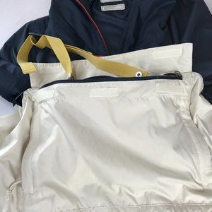 The North Face Anorak Hooded Windbreaker with Kangaroo Pouch. Dark Blue White S