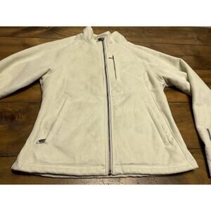 The North Face Apex Jacket Small Beige Faux Leather Full Zip Fleece Logo