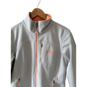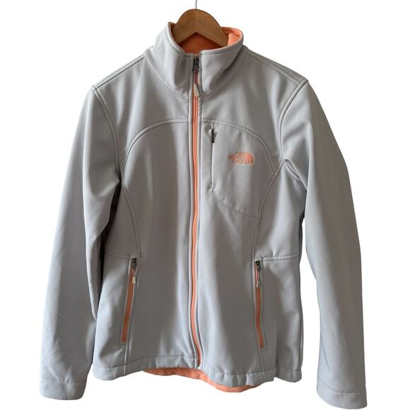 The North Face Apex Soft Shell Jacket in Gray & Peach, size M. Good preowned condition, 100% polyester