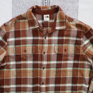 The North Face Arroyo Flannel Shirt in a men's XL. Perfect for fall, this is a nice mid-weight 100% cotton flannel shirt with two button chest pockets. Lightly used, clean, and in excellent preowned condition.