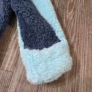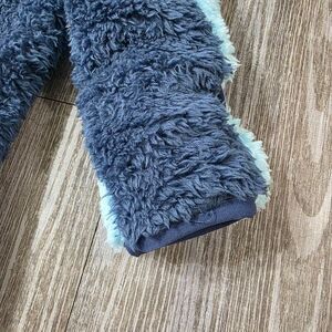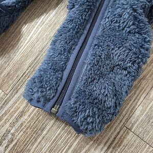 - Product Details: sherpa fabric. Hooded. Has small bear ears on top of hood. Cross-body zipper.