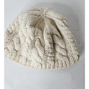The North Face Beanie Womens O/S Ivory Wool Blend Cable Knit Fleece