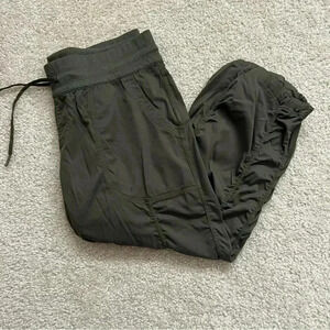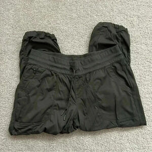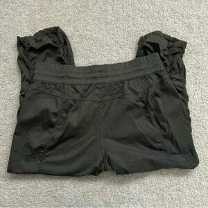 Comfortable black capris. Elastic waistband with drawstring. Perfect for casual wear.