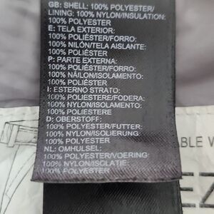 Material: shell-100% polyester, lining-100% nylon, insulation-100% polyester