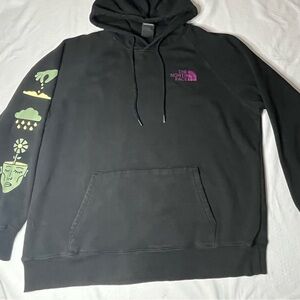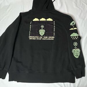 Stylish black sweater with unique graphic design. Ideal for casual wear. second hand in good condition with no stains or damage to fabric