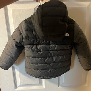 NWOT. Warm fleece jacket with hood. Full zip closure. Perfect for chilly days. Reversible! Classic traditional design in one side, black fleece/sherpa on others. So soft! Size is 2T but runs small. Listing as 18 months for that reason. *This was too small for my child, so we never wore. Hence NWOT.